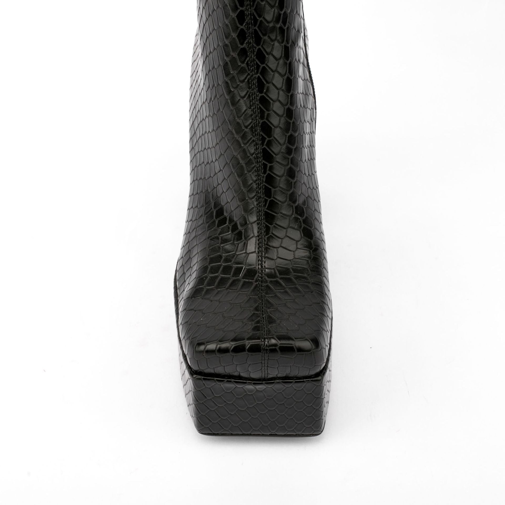 INS Autumn And Winter New Square Head High Waterproof Platform Thick Heel Side Zipper Fashion Women's Short Boots Thick Plus Size New