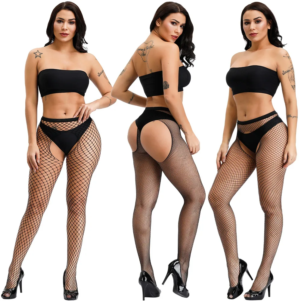 Sexy Women Crotchless Bodystocking Sexy Erotic Lingerie Stockings Large Size Fishnet Tights Plus Size Women Tights Open Crotch